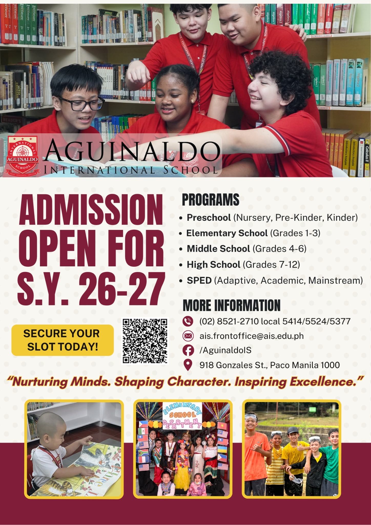 From Preschool to High School, we are committed to:Β Nurturing Minds